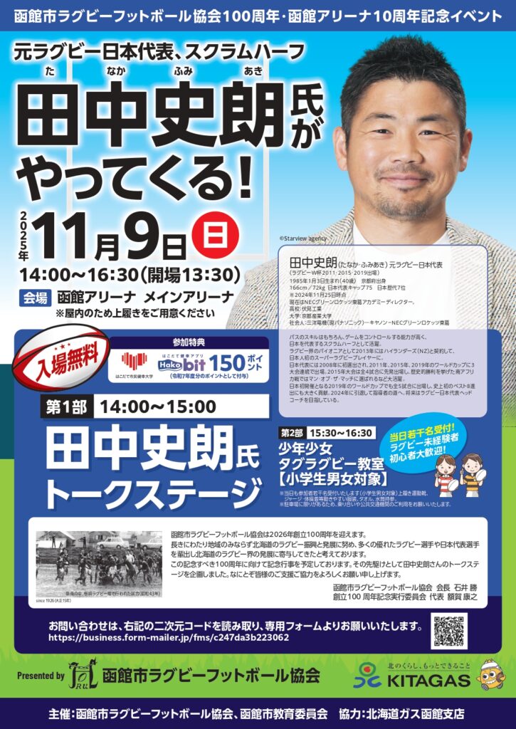 【はこだて市民健幸大学】「函館市ラグビーフットボール協会100周年・函館アリーナ10周年イベント」