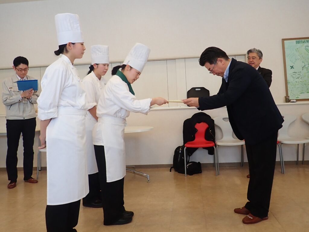 コンテスト当日は、生徒がグループごとに考案した料理を調理・配膳し、各協議会の関係団体からの審査員が試食審査を行いました。