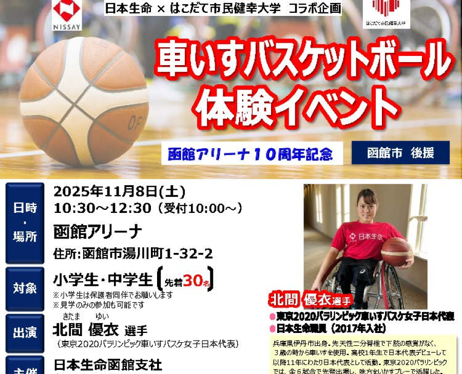 11/8 日本生命函館支社主催「車いすバスケットボール体験イベント」