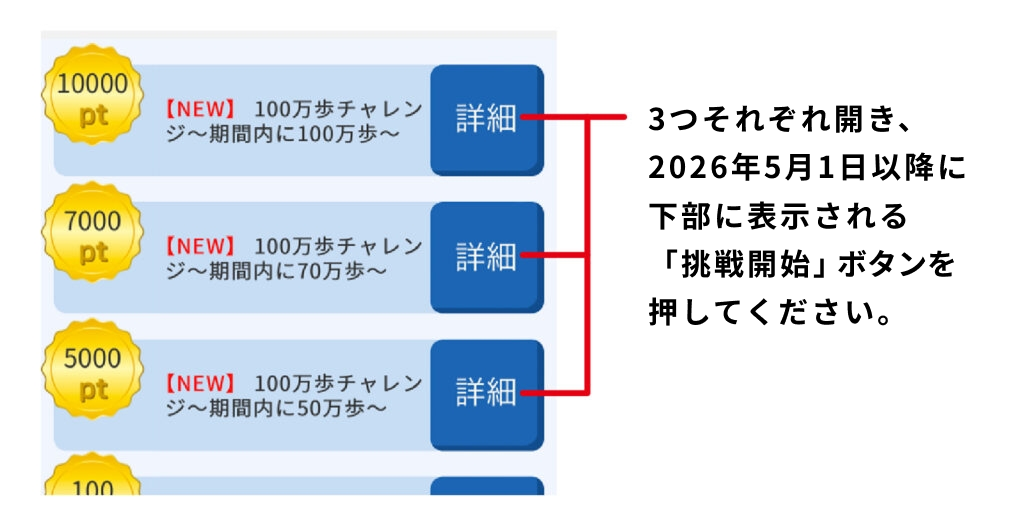 ※「挑戦開始」ボタンは2026年5月1日以降、詳細を開くと下部に表示されます。